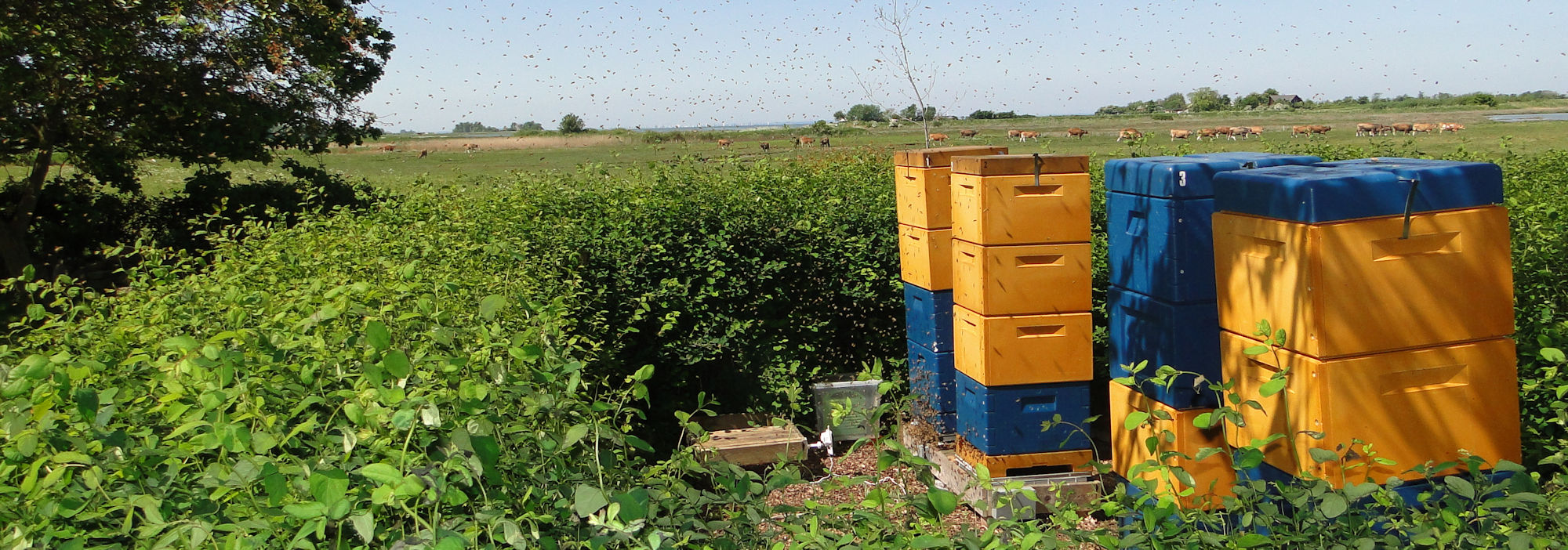 Min hovedbigård ligger ved vort fritidshus på Lindøhoved ved Jersore, 10 km øst for Bogense. Her har jeg haft 4 produktionsfamilier plus en lille familie fra 2017, som har udviklet sig i løbet af året. Omkring stedet er der en del marker, primært med korn-afgrøder, men af og til også med vinterraps. I år var der således en rapsmark i ca. 1 km flyveafstand. Lige ved siden af stedet er der et stort strandengsareal, hvor der om sommeren går 20 – 30 kvier og græsser. Trækkilderne er således primært mælkebøtte, æbletræer og raps om foråret og strandengsblomster, heriblandt hvidkløver om sommeren.