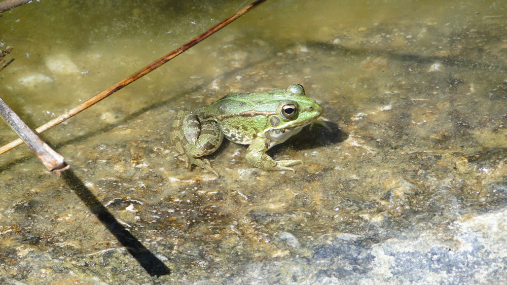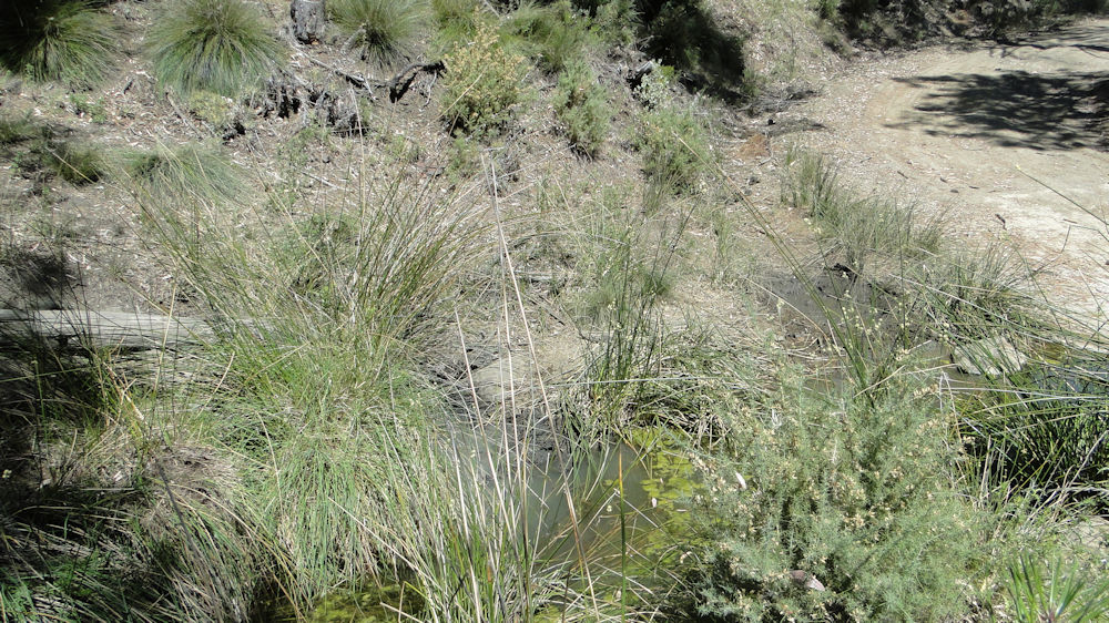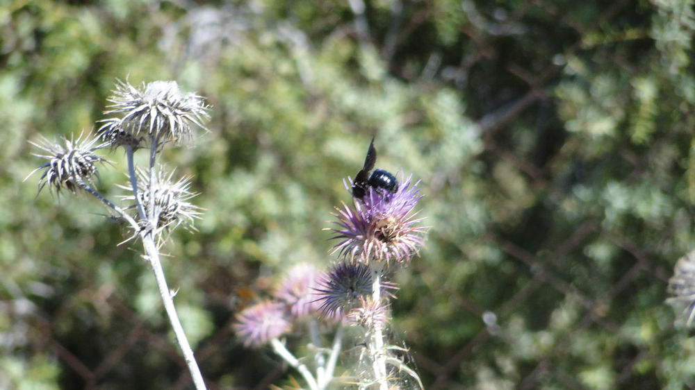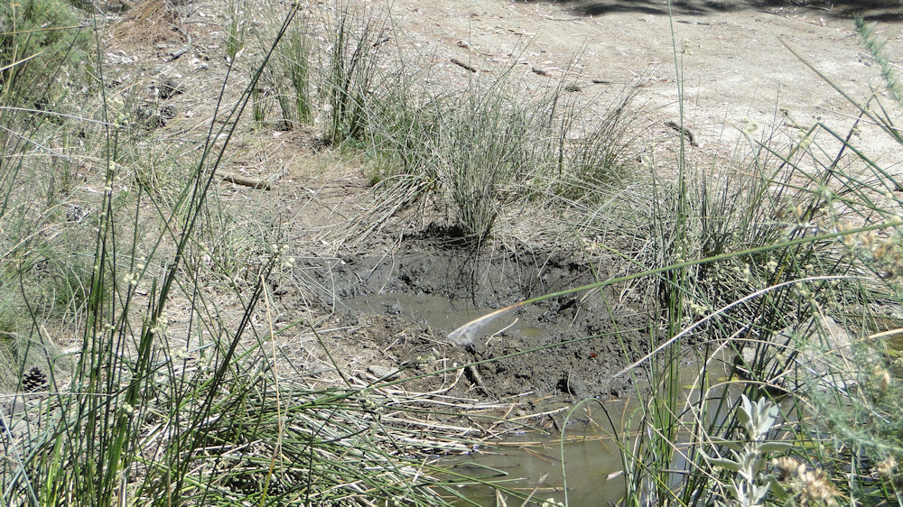 Vi efterlod bilen og gik yderligere nogle km ud af stien. Det blev en dejlig tur. Det var mange udsigtspunkter, og et sted ved en lille bæk så vi vildsvin, der hastede væk. Ved bækken var der spor af mudderhuller, som sikkert var vildsvinenes afkølingssted. Medens vi sad stille på stedet et stykke tid i håb om, at svinene ville vende tilbage, hørte vi en fugl, der kaldte. Vi kunne dog ikke få øje på fuglen, og det viste sig da også, at det var en stor grøn frø - måske en klokkefrø. Vi så også kulsorte humlebier (Xylopa - Tømrerbi?) og en 6-7 cm stor græshoppe.